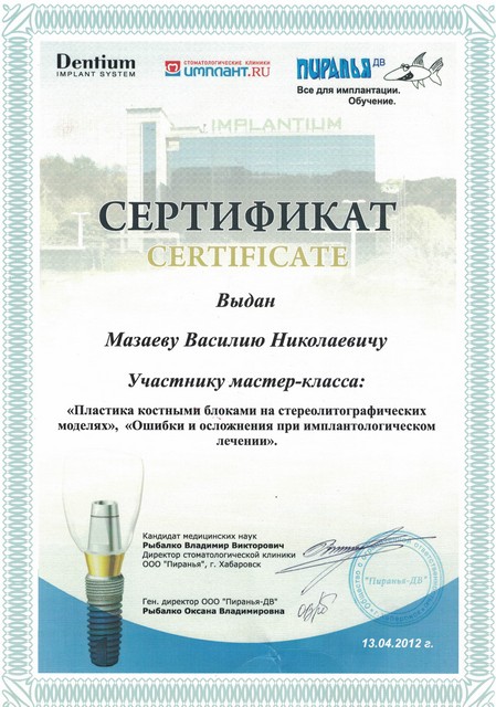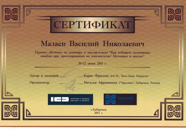 Дважды награжден орденом «Лучший стоматолог России».
